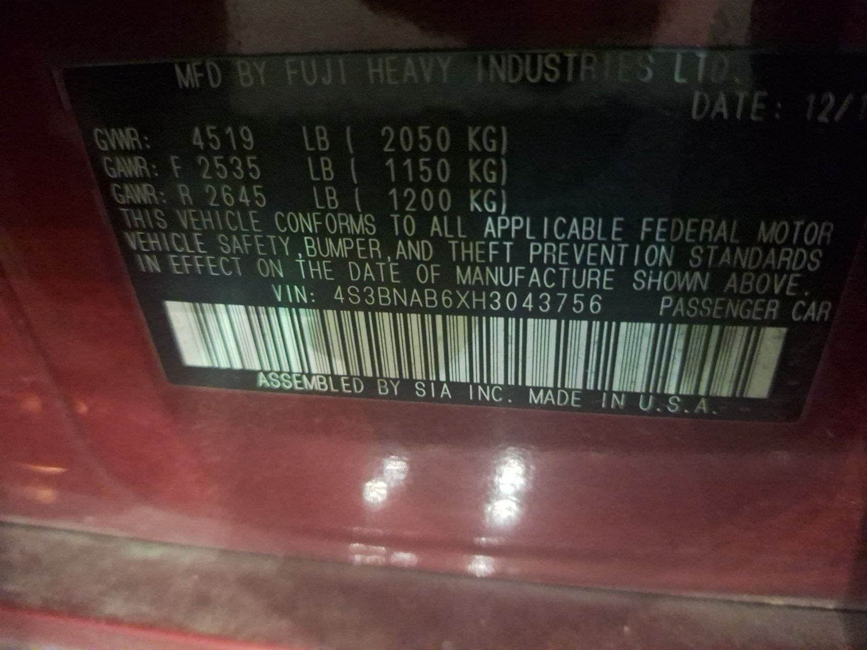 - Vehicle Name: Subaru Legacy